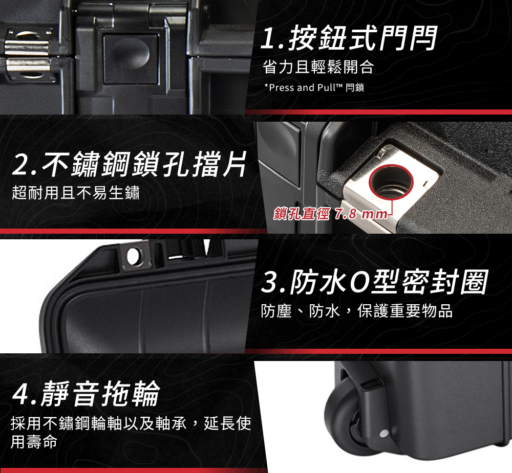 ● 防水O型密封圈,防塵、防水