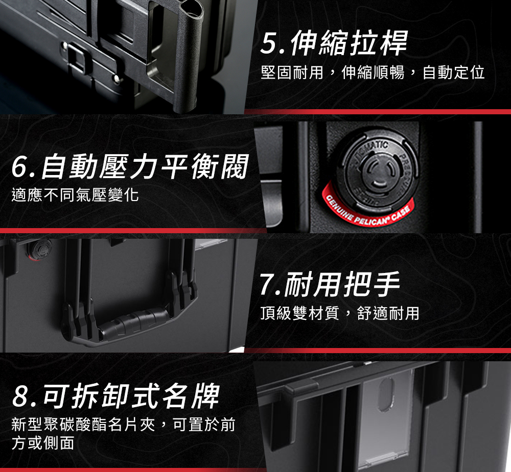 ● 超耐用拖輪、伸縮拉桿