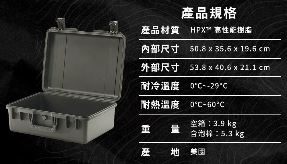 ● 經過 IP67 、 MIL-STD-810G認證 ● 軍規等級防護 最好的保護 ● 防水O型密封圈,防塵、防水 ● 按鈕式門閂,省力且輕鬆開合 ● 帶鎖耐用鎖孔,耐磨抗損 ● 自動壓力平衡閥,適應不同氣壓變化 ● 頂級雙材質,耐用把手